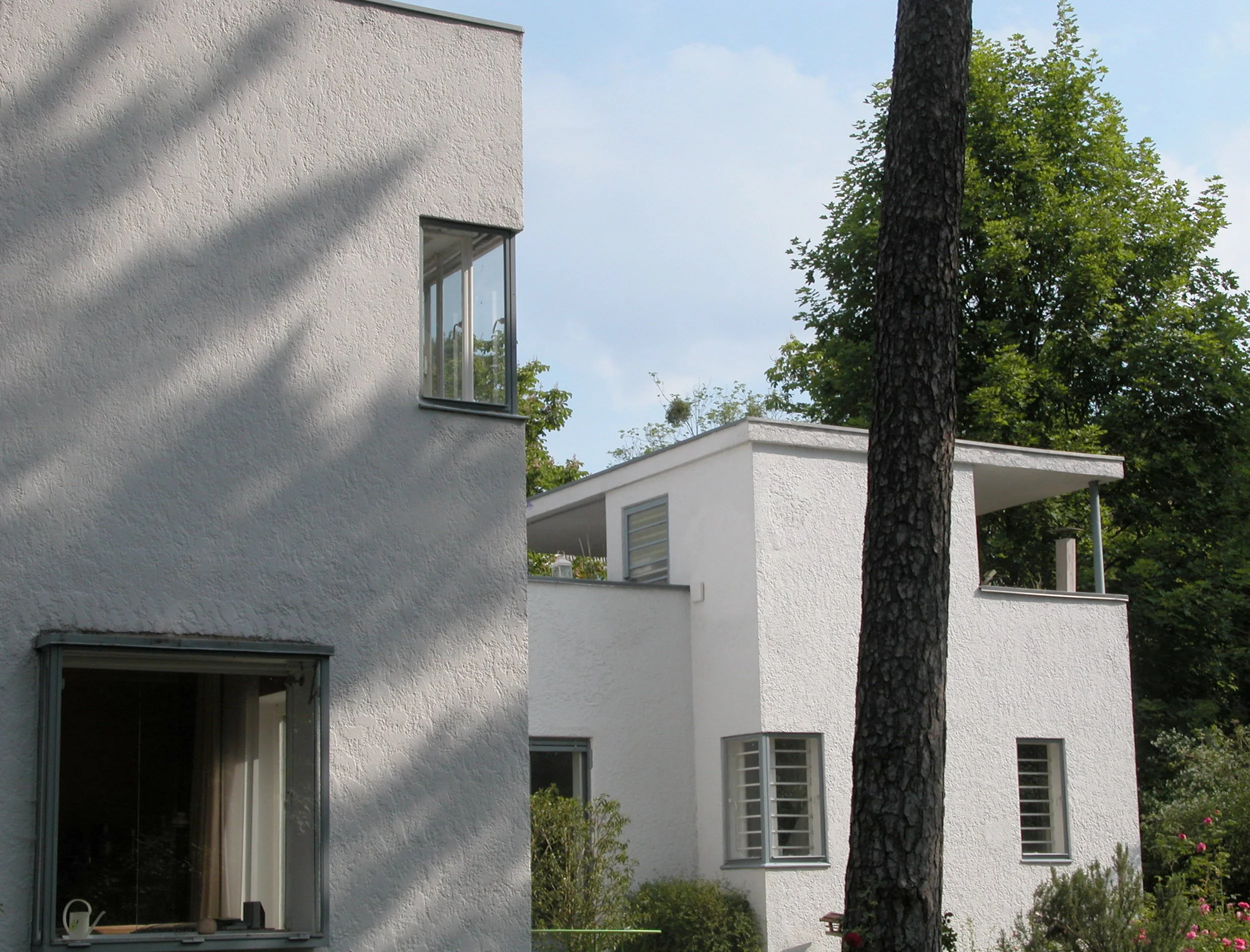 “Key features include flush-mounted steel windows, flat roofs, roof and garden terraces, and a strong orientation toward sunlight, all of which reflect the principles of Neues Bauen. ”